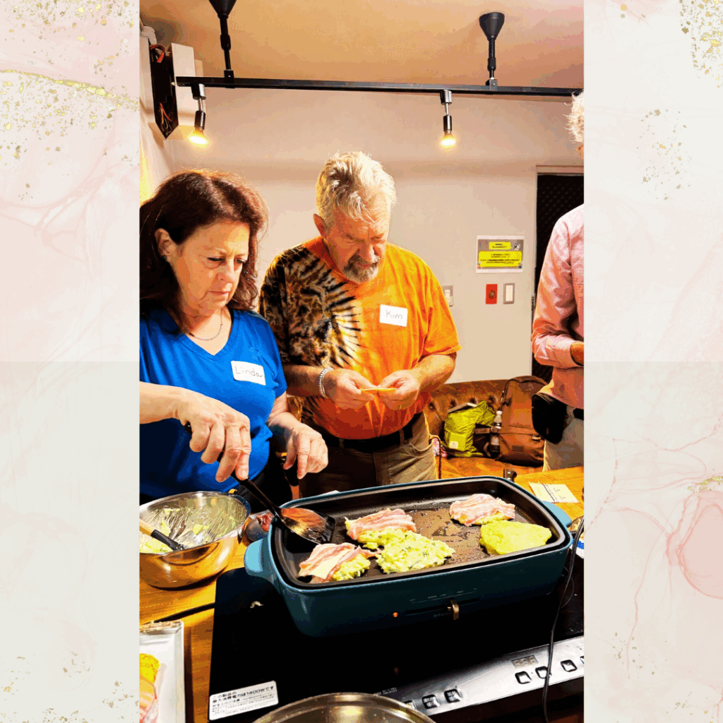 The couple who had made a reservation mentioned that meeting new people while traveling is one of the joys of the journey, and the instructor was happy to see that they enjoyed chatting with the others in class😊