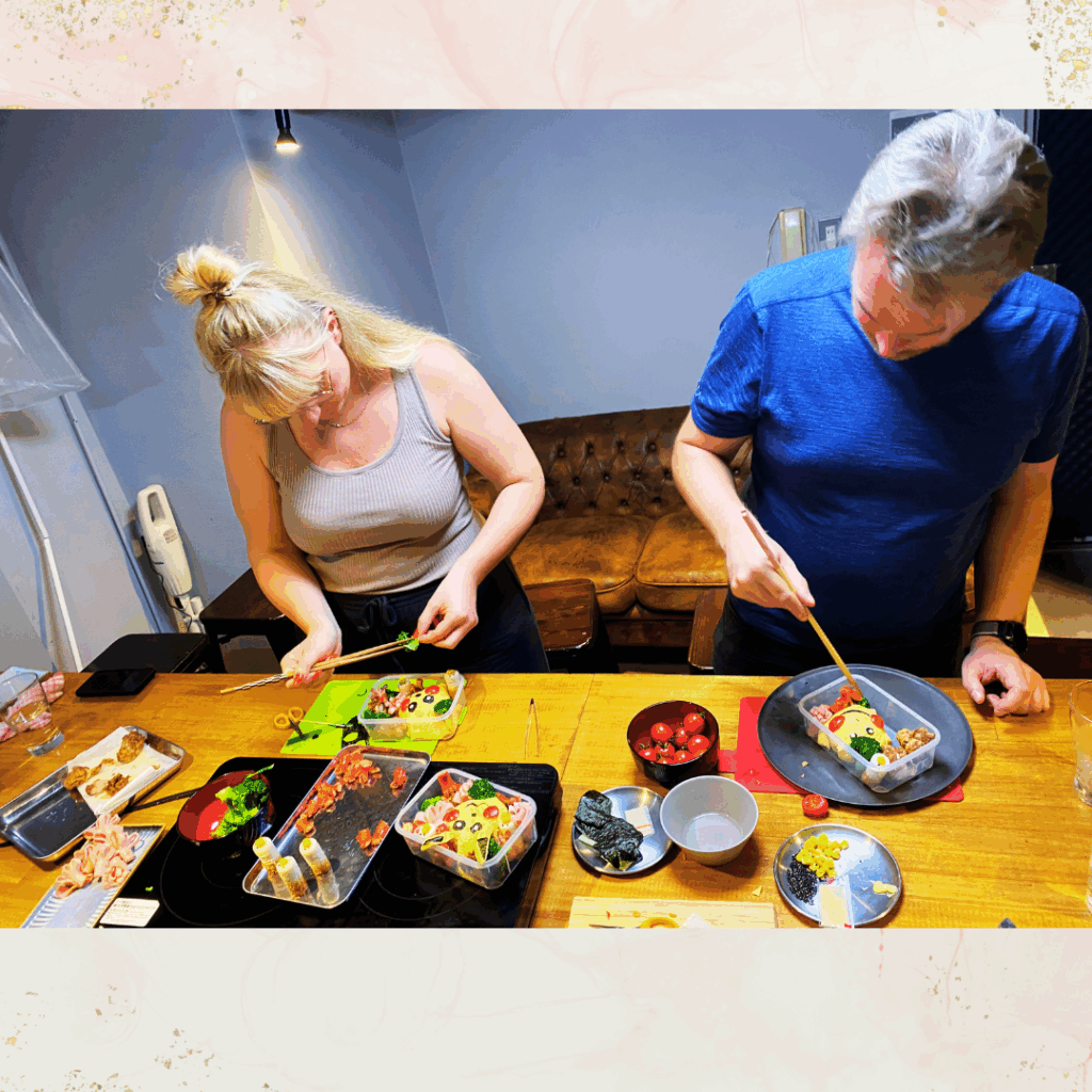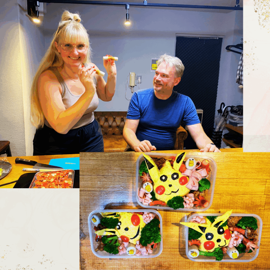 They originally couldn’t find an opening for the set-meal class, but in the end, they enjoyed making character bento🥰