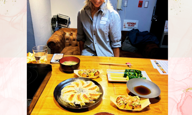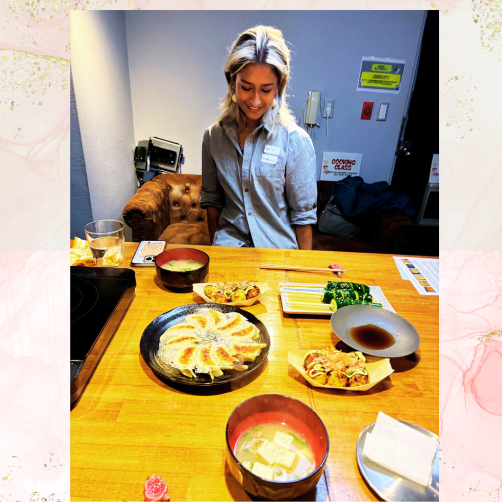 She is skilled and made everything perfectly — gyoza, takoyaki, and even the cucumber cutting.
