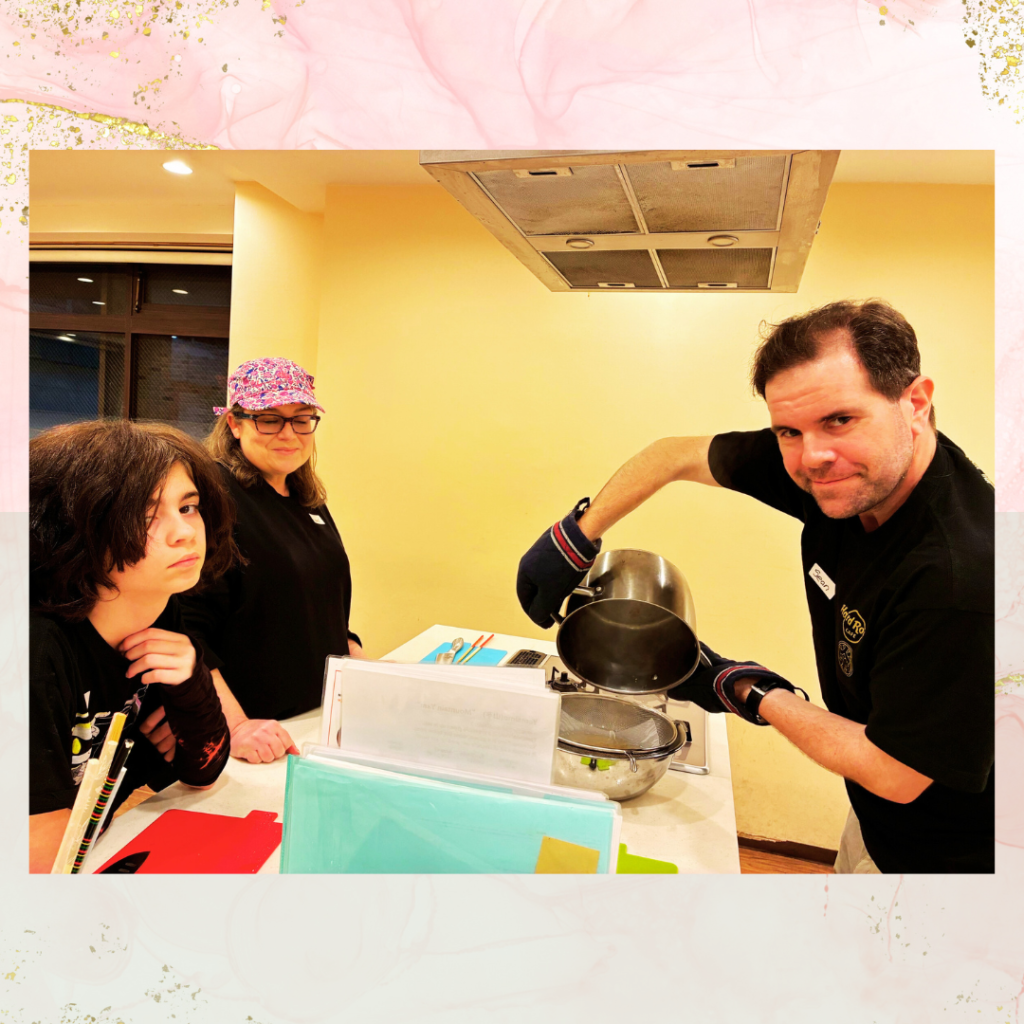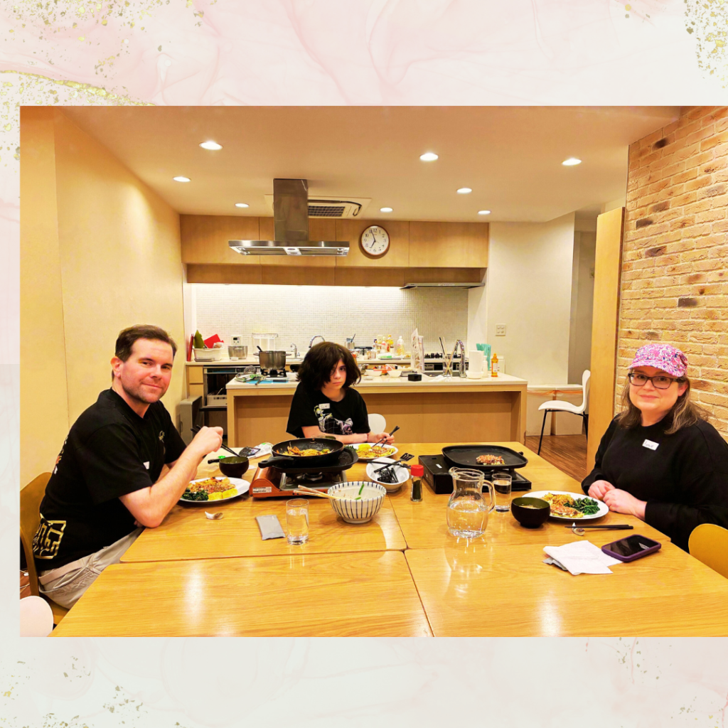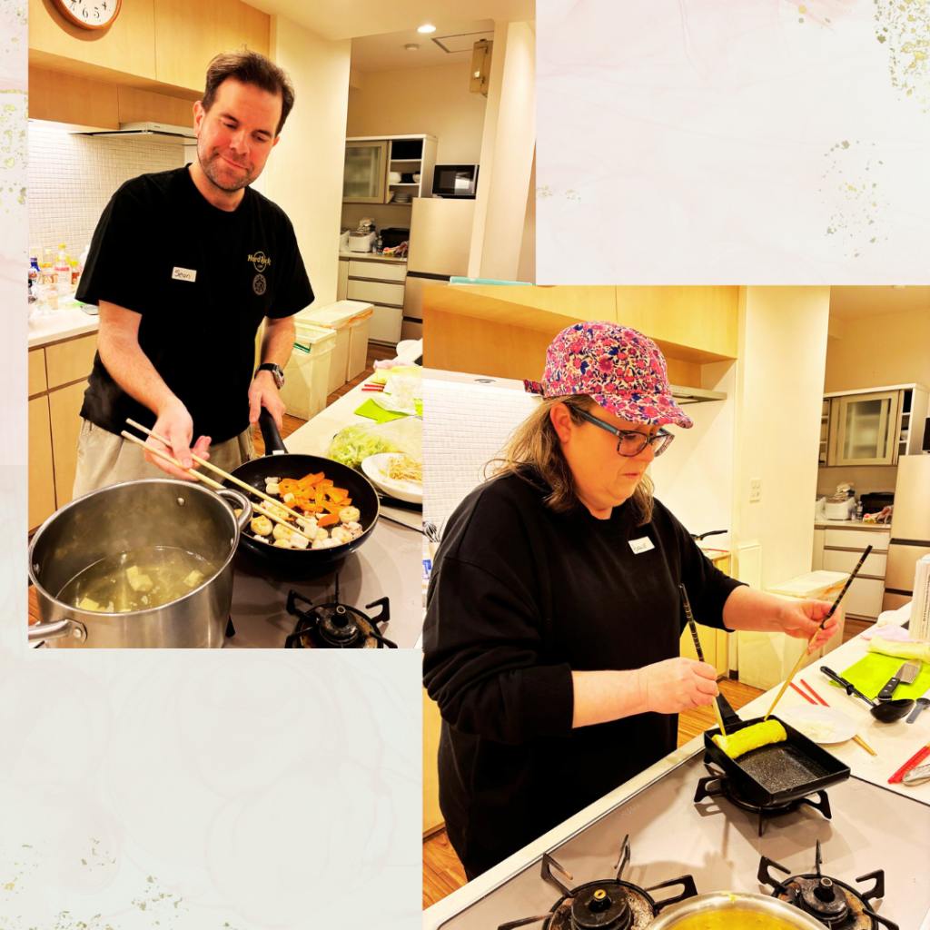 They cooked everything well and enjoyed eating a lot. We were also able to make tamagoyaki, which Angela had especially hoped to try.