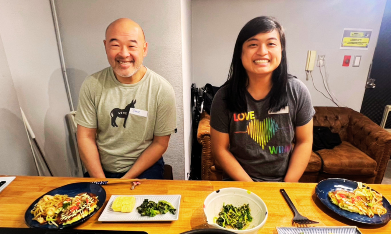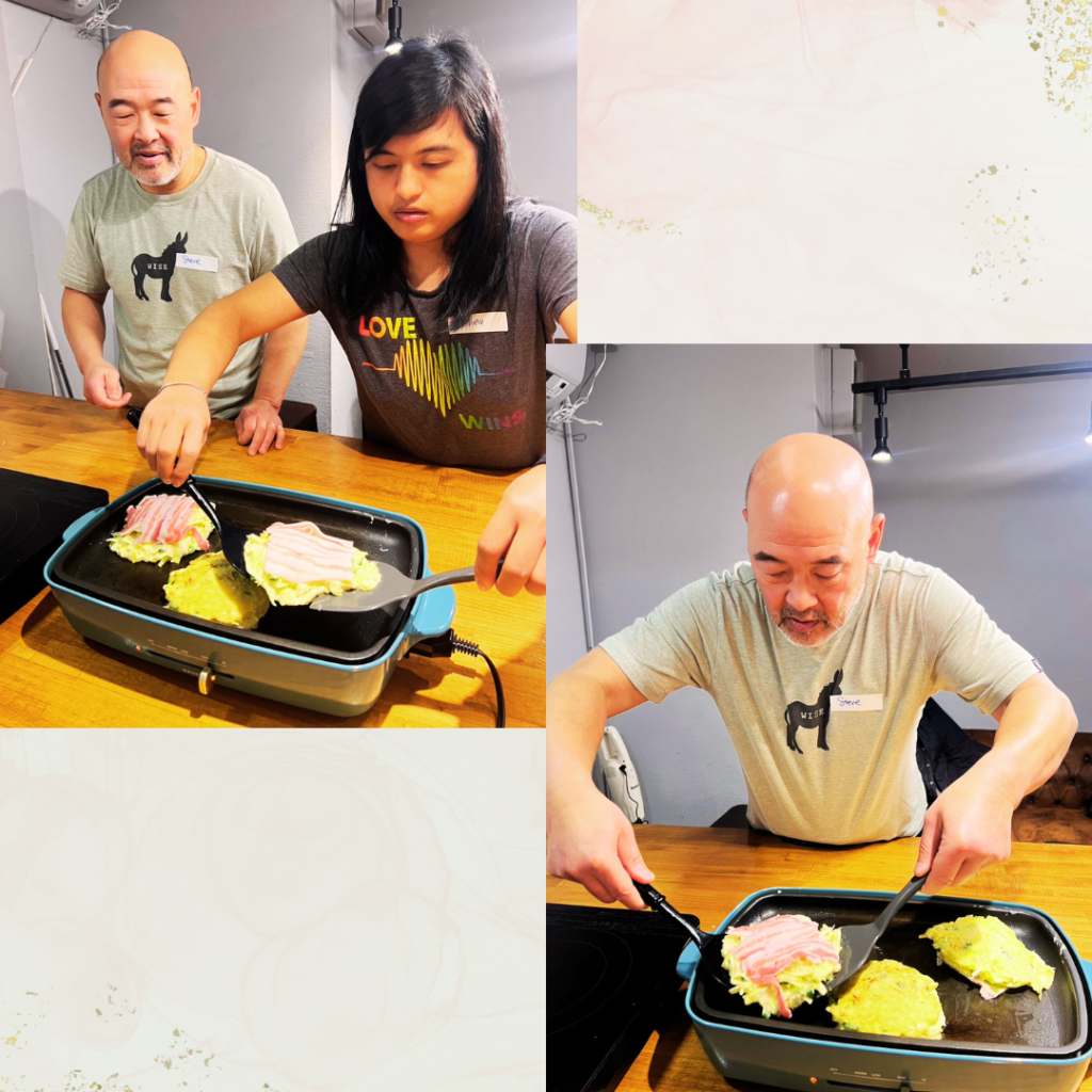 Their focused expressions even while flipping okonomiyaki said it all—they carefully worked through each step with great attention.