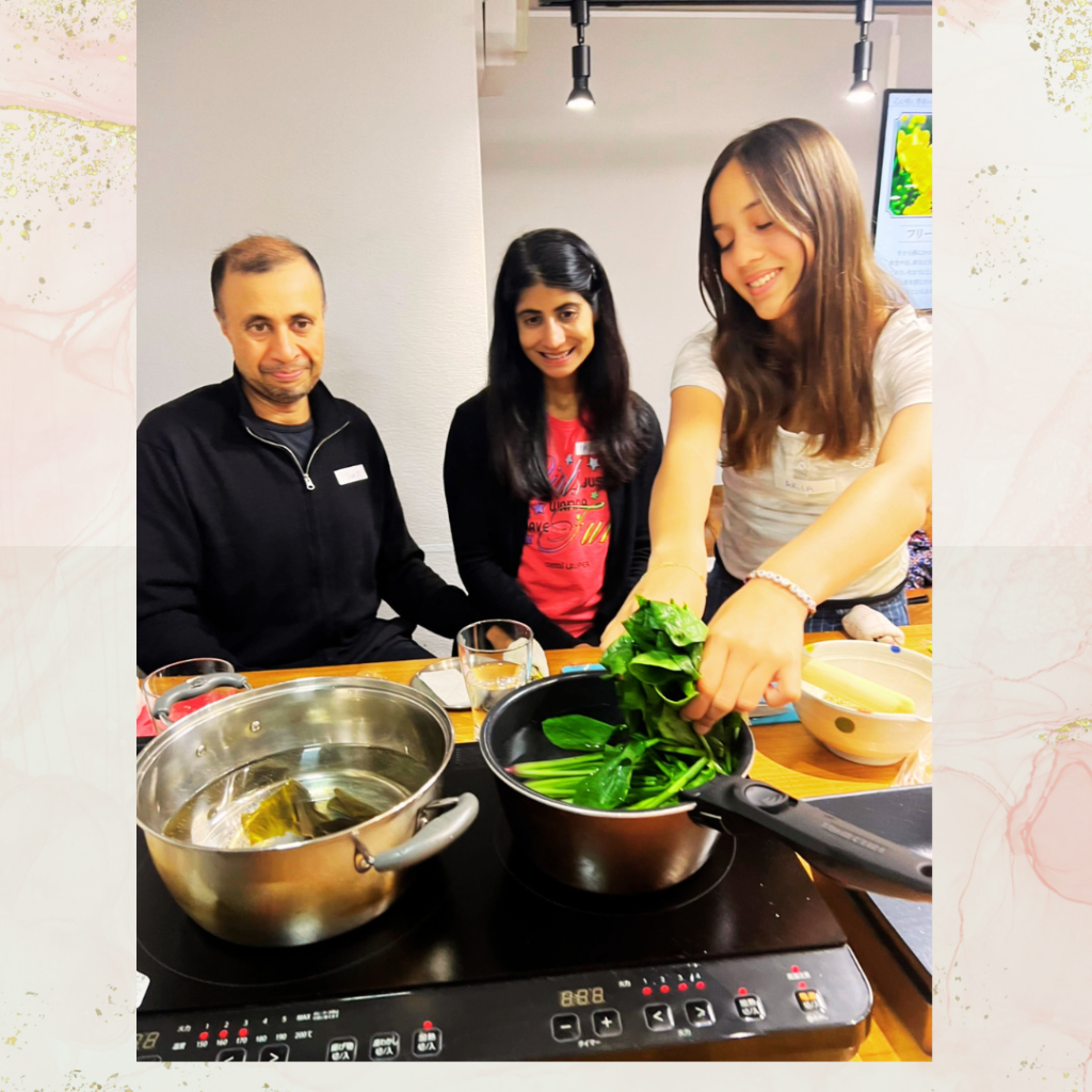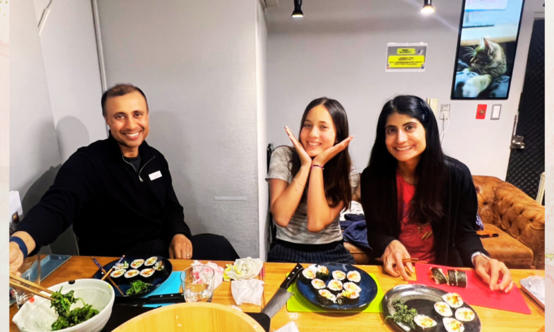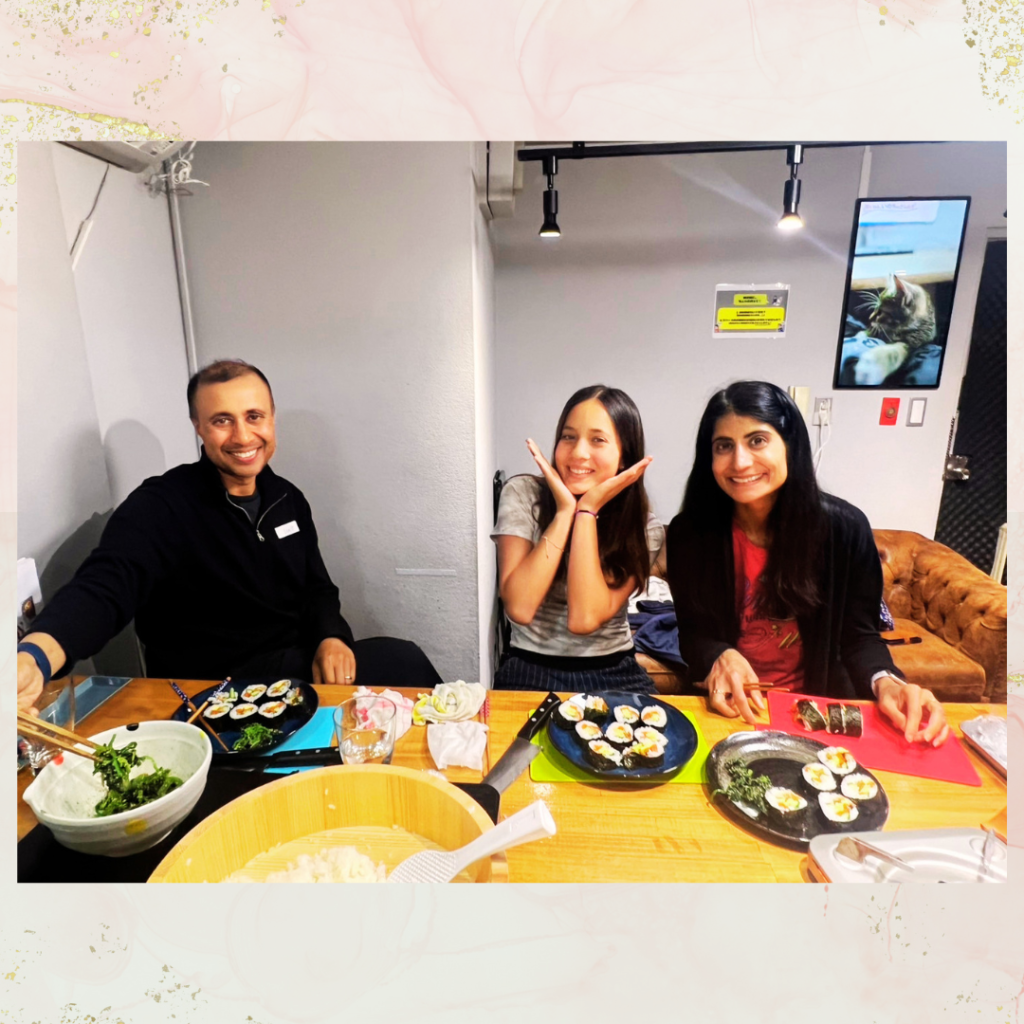 They joined the class after skipping lunch, and by midway through they were quite hungry—so as soon as the sushi rolls were ready, they started eating before all the dishes were finished😍