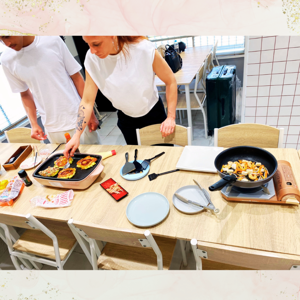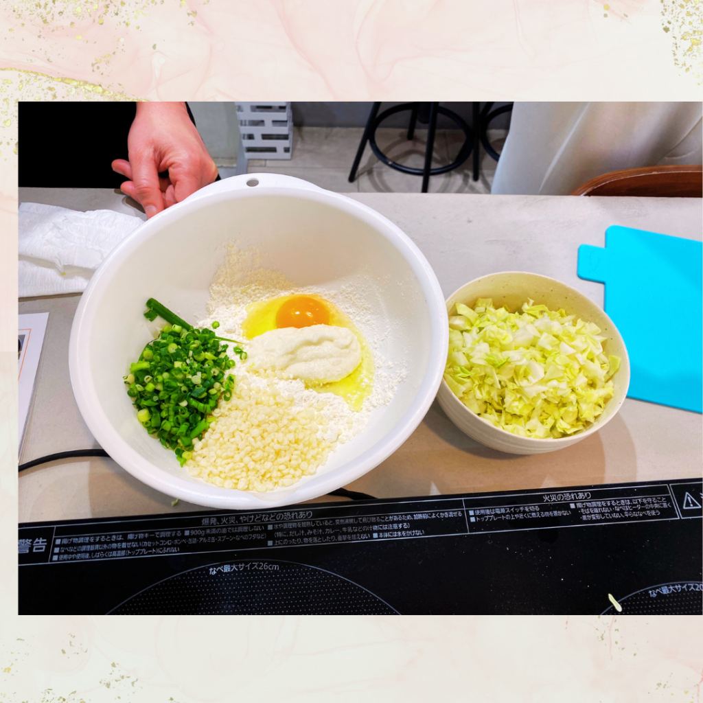 Today, they made okonomiyaki for the first time. Some of the ingredients, such as Japanese yam, are quite unique, but they didn’t hesitate at all and enjoyed tring out everything😍