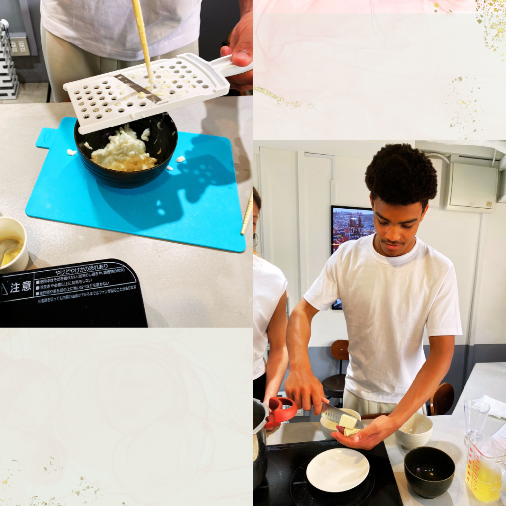 Jay’s love for cooking really came through—he is also learning cooking at school, which made his passion very clear. Jenni also enjoys cooking in her daily life and asked many questions throughout the class.